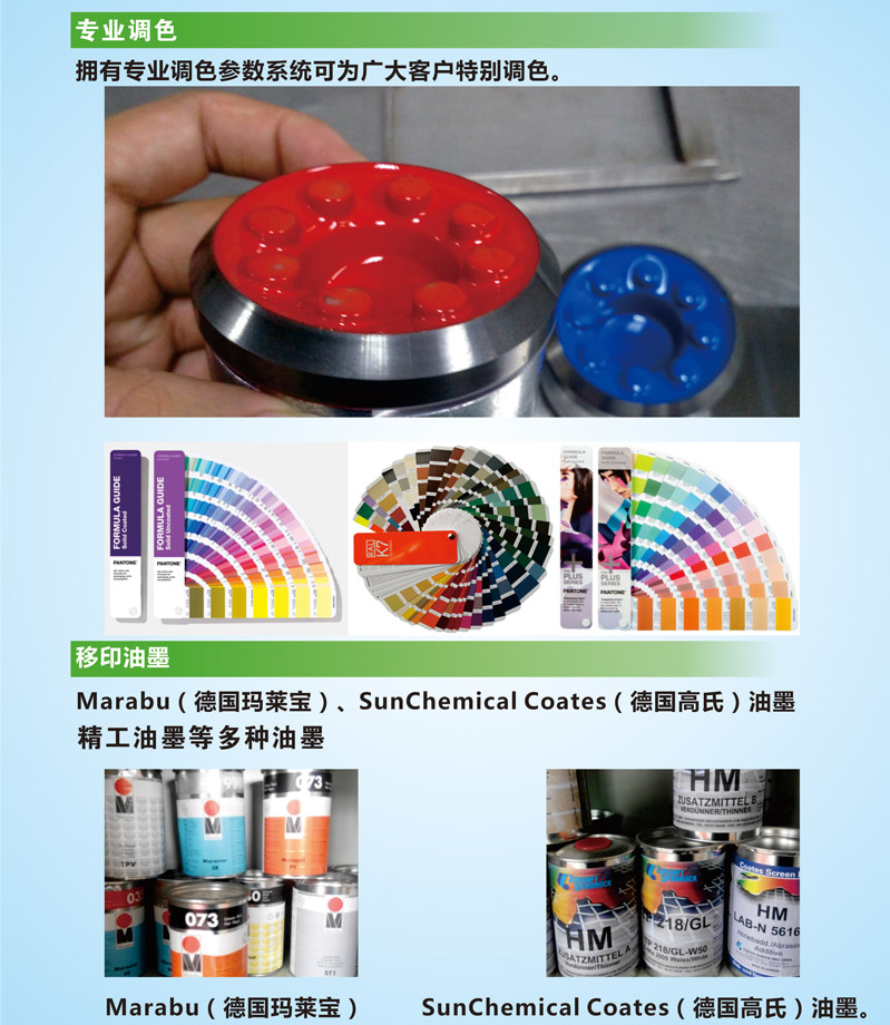 專業的技術、規范的管理、踏實的態度、優質的服務我們提供全方位移印解決方案!